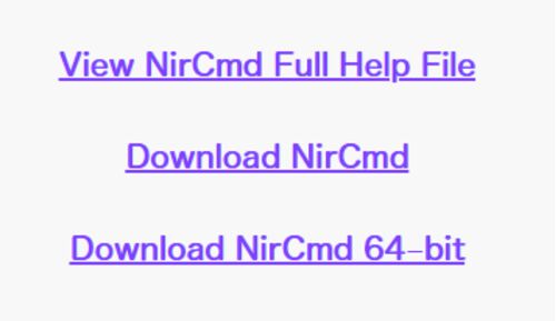 結論 NirCmd を用います。最新版のリリース日は 2019/01/08 ですが、現時点での Windows 10 でも問題なく動作します。 www.nirsoft.net ページの一番下に以下の画像のようなダウンロードリンクがあるので、Download NirCmd 64-bit をクリックしてダウンロー…